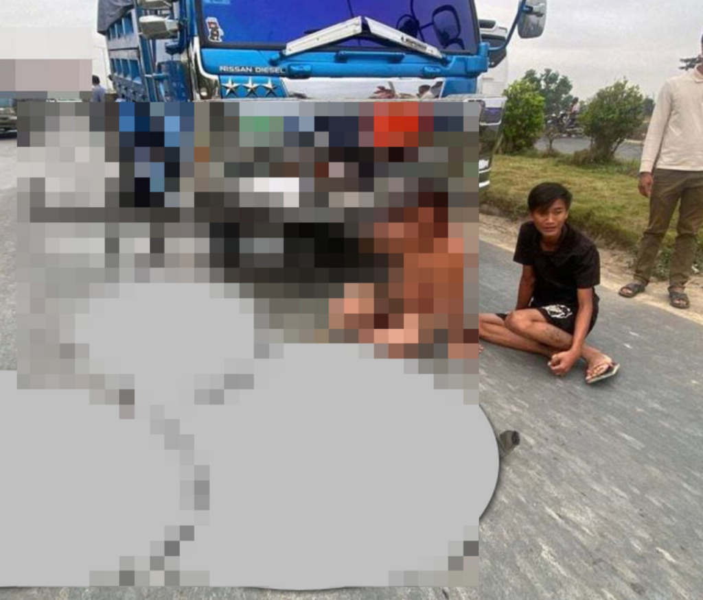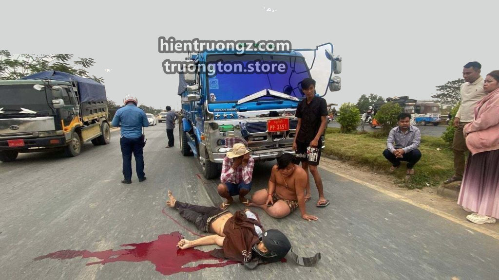 PHNOM PENH, Campuchia – 9/2/2026: Một vụ tai nạn giao thông đặc biệt nghiêm trọng xảy ra tại Phnom Penh khiến một người đàn ông tử vong tại chỗ sau khi va chạm mạnh với xe tải.