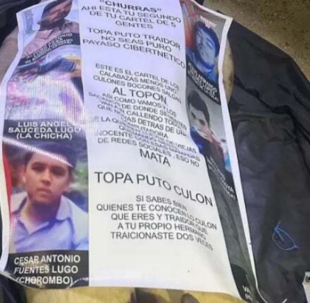 Tại hiện trường, cảnh sát còn phát hiện một biểu ngữ của băng đảng ma túy, với nội dung đe dọa nhằm vào “El Churras Calabazas”, người được cho là thủ lĩnh của nhóm Los Calabazas.