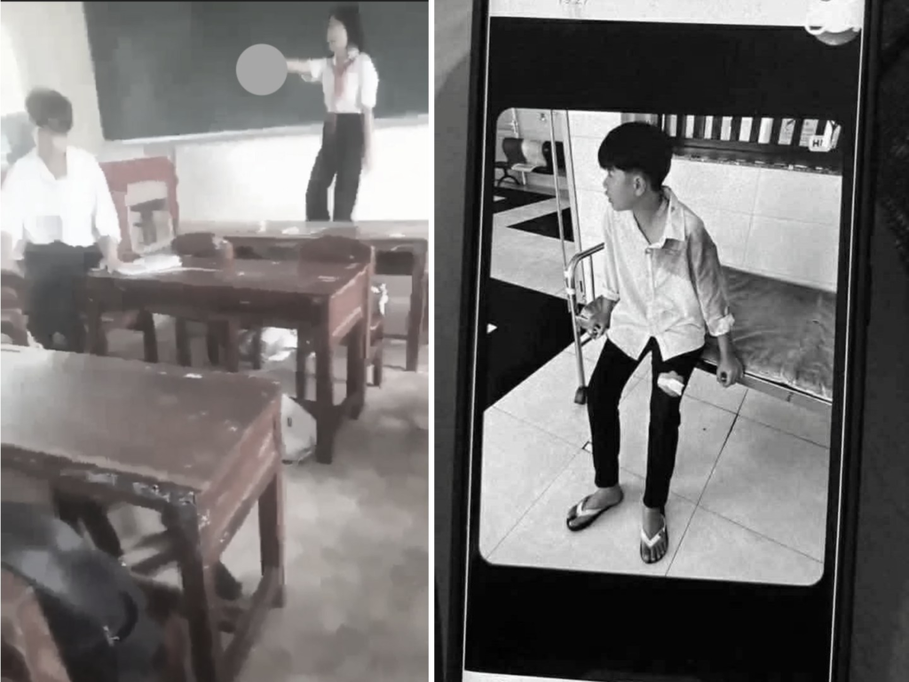 chọc nhau sao mà cháu gái cầm dao rọc giấy xiên luôn