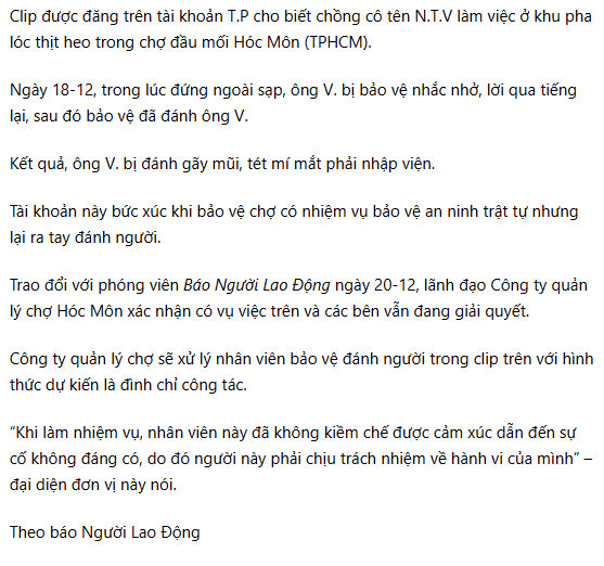 Vjdeo bảo vệ chợ đầu mối oánh ng nhập viện