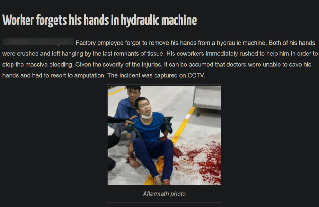 Vụ T/N,L/D máy thủy lực chia 2 tay  của công nhân Việt Nam bất ngờ được chia sẻ lại trên báo quốc tế